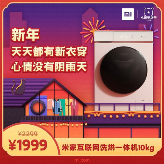 小米年貨節(jié),多款家電鉅惠,驚喜好價值得買,米家互聯(lián)網(wǎng)洗烘一體機(jī)10kg,國標(biāo)最高A+級洗凈能力,洗得凈、烘得干,只要一臺就可以搞定全家衣物,年貨節(jié)到手價只要1999元。