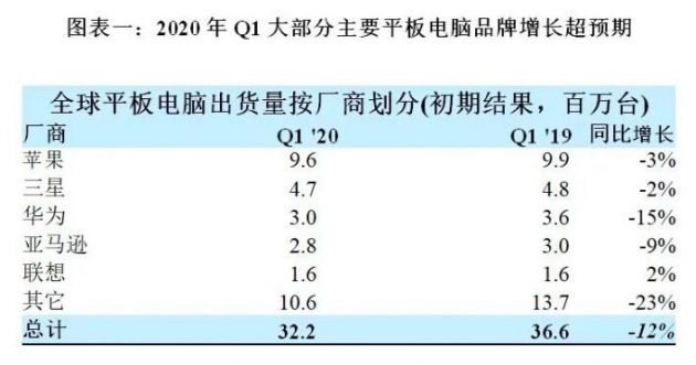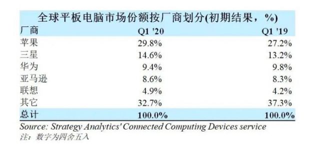 Strategy Analytics資深研究分析師Chirag Upadhyay補(bǔ)充說(shuō):“總體而言,由于全球COVID-19疫情阻礙了經(jīng)濟(jì)活動(dòng),因此2020年第二季度消費(fèi)者將承受巨大壓力。然而,有證據(jù)表明,隔離期間,人們?cè)诩肄k公以及學(xué)習(xí),對(duì)平板電腦的需求強(qiáng)烈,這將使諸如蘋果和聯(lián)想之類的一些廠商受益。”