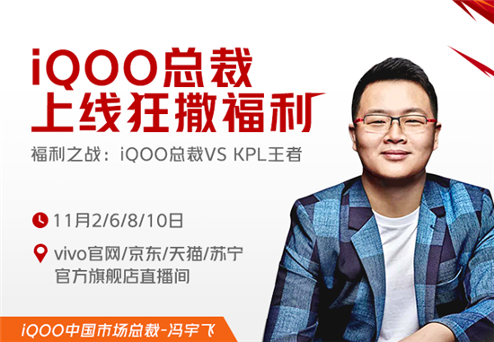 不僅如此,vivo iQOO的直播還邀請(qǐng)到了品牌大佬在線開(kāi)講,屆時(shí),寶藏干貨將會(huì)限量放送。11月2日、6日、8日、10日四天,iQOO中國(guó)市場(chǎng)總裁馮宇飛將會(huì)現(xiàn)身vivo官網(wǎng)、京東、天貓、蘇寧官方旗艦店直播間,為大家?guī)?lái)福利之戰(zhàn):iQOO總裁vs KPL王者。11月9日,vivo電商推廣部總經(jīng)理張鵬飛也將作客vivo官網(wǎng)、京東、天貓、蘇寧官方旗艦店直播間,數(shù)款機(jī)型限量好價(jià),機(jī)惠不容有失,如果您有中意許久的手機(jī)還想撿漏的話,這場(chǎng)直播不容錯(cuò)過(guò)。