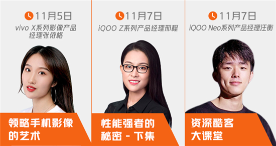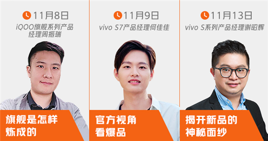 同日,iQOO Neo系列產(chǎn)品經(jīng)理汪衡將會(huì)現(xiàn)身資深酷客大課堂;11月8日,iQOO旗艦系列產(chǎn)品經(jīng)理周振瑞會(huì)告訴大家,旗艦是怎樣煉成的;11月9日,vivo S7產(chǎn)品經(jīng)理何佳佳將會(huì)以官方視角看爆品;11月13日,vivo S系列產(chǎn)品經(jīng)理謝昭輝將為大家揭開(kāi)新品手機(jī)的神秘面紗。歡迎大家持續(xù)關(guān)注vivo官網(wǎng)、京東、天貓、蘇寧官方旗艦店直播間,內(nèi)容更加精彩。