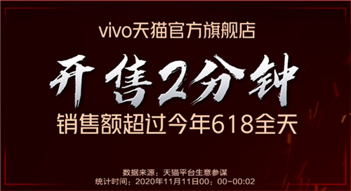 vivo官方旗艦店斬獲京東手機第三方平臺品牌旗艦店銷量、銷售額雙冠軍頭銜;vivo官方僅用時1小時,總訂單量超今年618同期全天。