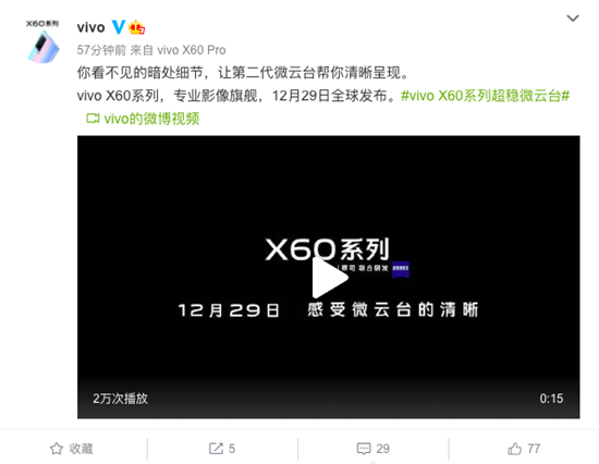 下周二,也就是12月29日晚19:30,這部旗艦級影像產(chǎn)品將正式與大家見面。關于X60系列,您還有什么想了解的嗎?歡迎持續(xù)關注我們的后續(xù)報道。