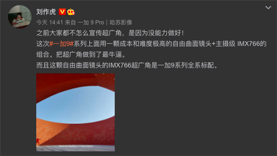 在強大硬件配置和一加丨哈蘇手機影像系統(tǒng)的加持下,一加9系列將帶給用戶更多的驚喜。劉作虎曾發(fā)微博表示:“一加9系列是8年旗艦集大成之作,2021年當(dāng)之無愧的影像機皇。”