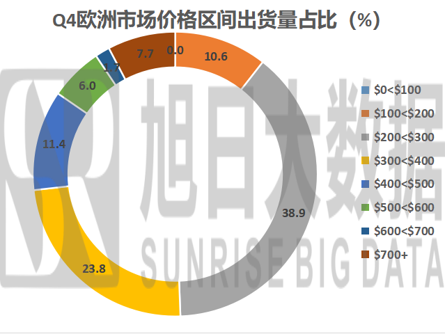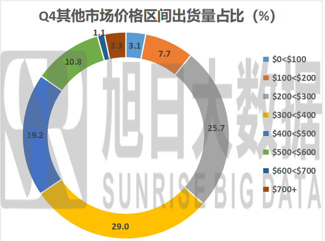 歐洲和其他地區(qū)市場(chǎng)情況較為相近,200-400美元的價(jià)格區(qū)間占據(jù)了60%左右的市場(chǎng)空間,200-500美元的價(jià)格區(qū)間則能占到高達(dá)80%左右的市場(chǎng)份額。