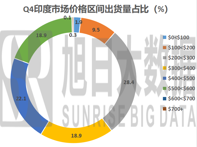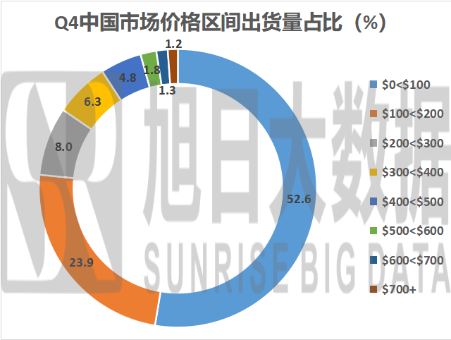 通過比較很容易可以看出來,各區(qū)域消費(fèi)水平差距較大。從全球總體消費(fèi)水平來看,出貨量最大的范圍是處于200-500美元的價(jià)格區(qū)間,占比比超過了60%的份額。