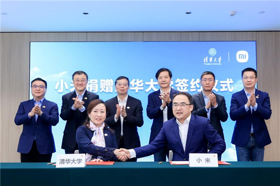 儀式上,小米基金會秘書長魏來和清華大學(xué)教育基金會秘書長袁桅代表雙方簽署捐贈協(xié)議。
