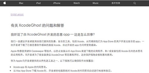 而在今天蘋果正式公布的專題頁面上,蘋果已正式對外解釋此事的緣由及處理方式,這個頁面算是對XcodeGhost事件的一個總結(jié),雖然蘋果的iOS系統(tǒng)被認為全球最安全的系統(tǒng),但通過這次事件,所謂的最安全并不是牢不可破的,蘋果需要認真反思和持續(xù)改進。這樣才能避免未來再次發(fā)生類似事件。